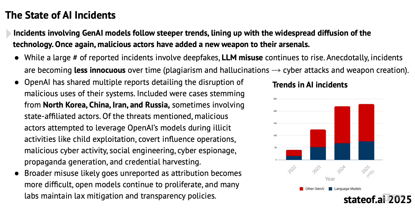 基於此,內森·貝奈奇對下一年度給出預測,他在報告中寫道:「對前沿AI模型的研究,中國的研究機構會超越美國;開放式AI智能體(Agent)更值得獲得進一步科研發現;AI安全領域,基於AI生成欺詐視頻的網絡攻擊事件將引發國際間討論;美國某頭部AI研究架構會最終轉向開源生態以獲得其政府支持。」