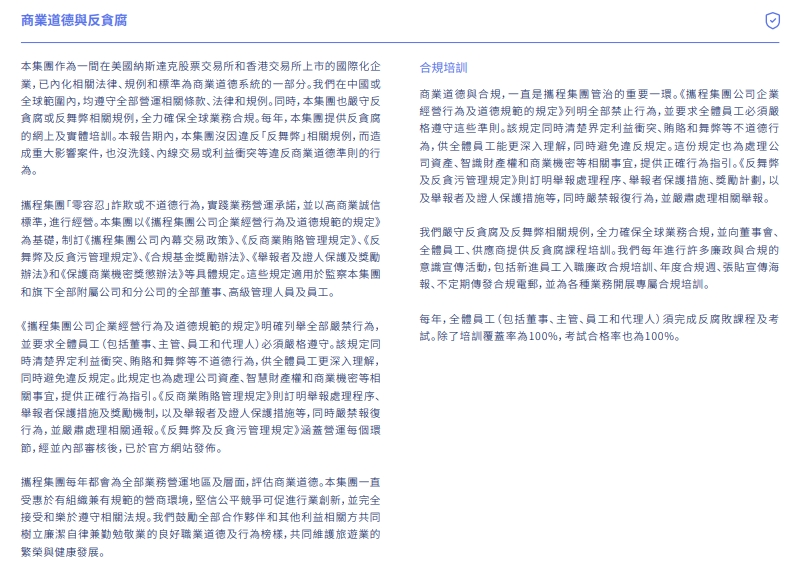 從攜程歷年的ESG報告來看,公司在合規、商業道德與消費者權益保護層面並非「完全缺席」。反壟斷合規、信息安全、投訴處理機制,均被寫入報告框架,治理結構看似完備。但問題恰恰在於:文本中的「合規意識」,並未有效轉化為業務運行中的「邊界感」。