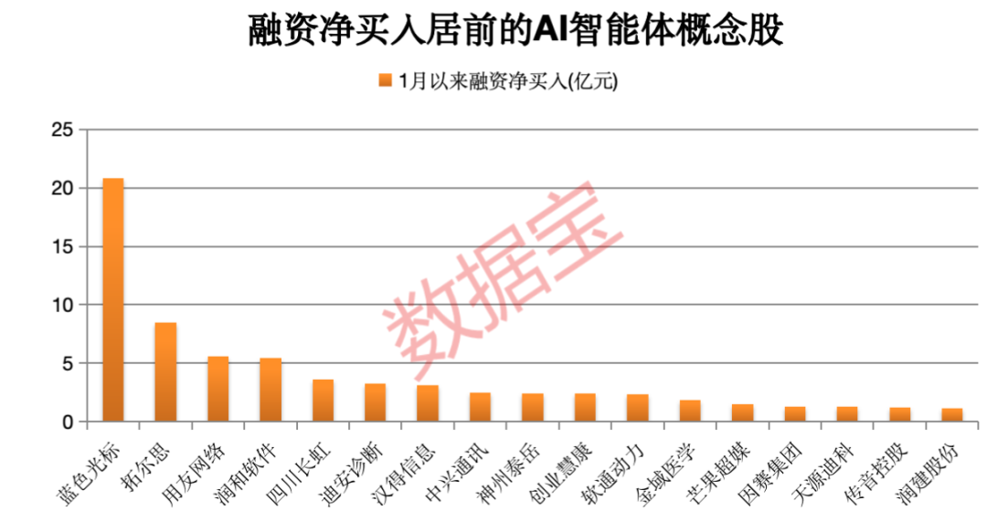 資金流向方面,截至1月19日收盤,上述回撤20%以上的AI智能體概念股中,1月以來獲得孖展淨買入超1億元的有17只,如藍色光標、拓爾思、用友網絡、潤和軟件、四川長虹等。