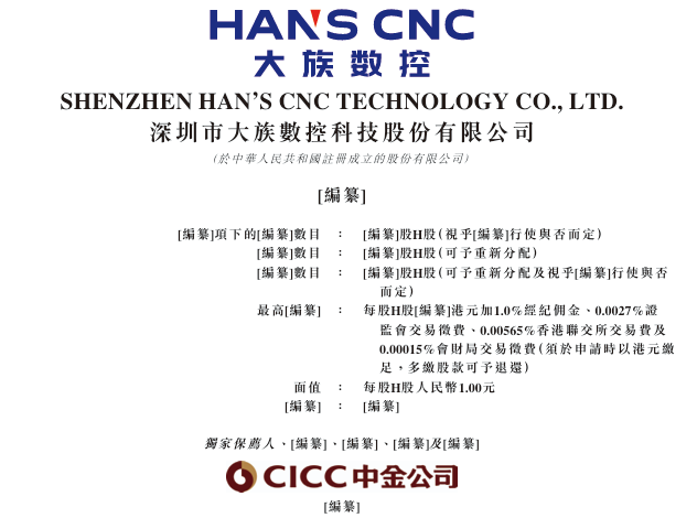 智通財經APP獲悉,據港交所1月19日披露,深圳市大族數控科技股份有限公司(簡稱:大族數控(301200.SZ))通過港交所主板上市聆訊,中金公司為其獨家保薦人。