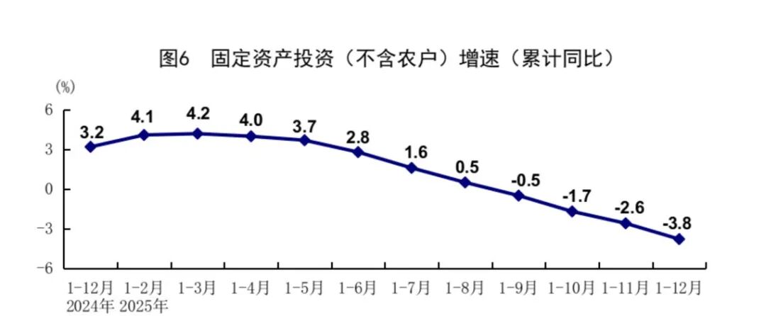 第五個數據固定資產投資。2025年固定資產投資全年3.8個百分點。