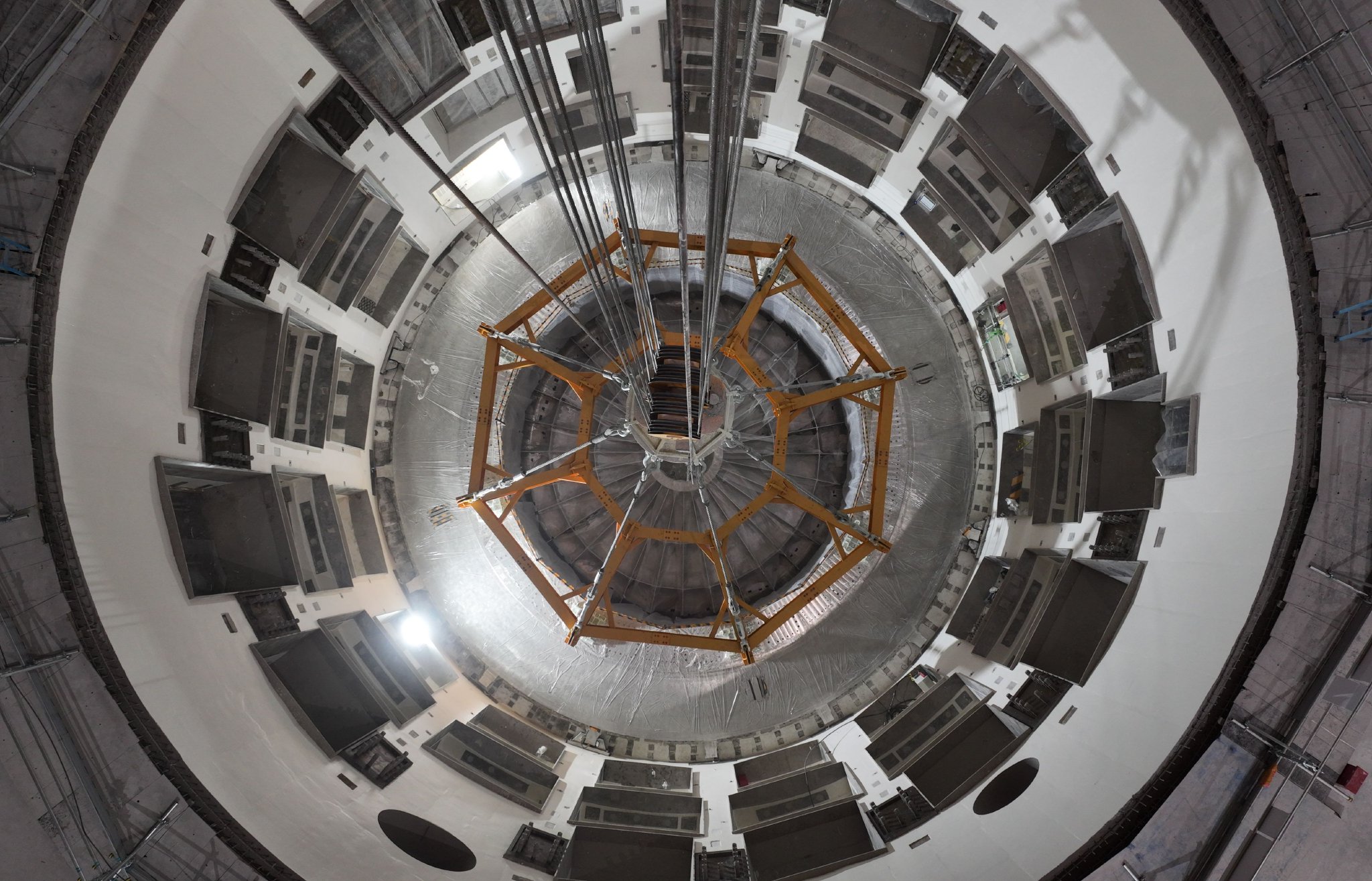 2025年10月1日在緊湊型聚變能實驗裝置(BEST)建設現場拍攝的成功落位安裝的杜瓦底座(無人機照片)。 新華社記者周牧 攝
