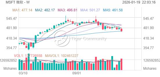 微軟股價自去年12月中旬的高點回落了16%,至今仍難以收復500美元的關鍵關口。