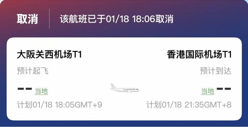 據公開信息披露,當地時間1月18日18時許,國泰航空從大阪飛往香港的CX507航班在大阪關西機場臨近起飛前半小時,機組人員告知乘客航班取消,導致大量乘客滯留機場。