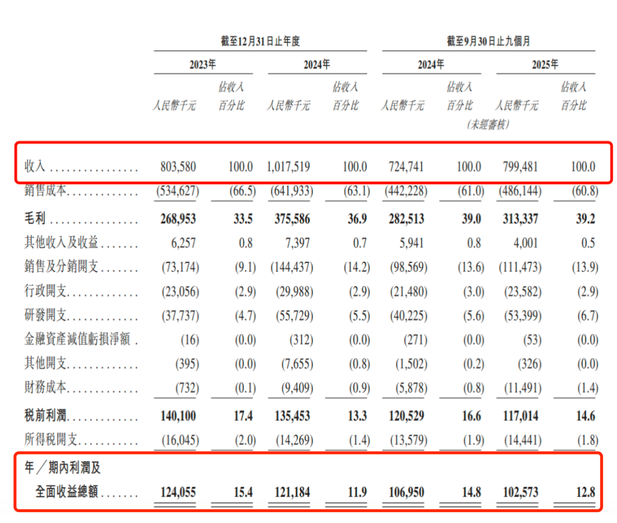 然而,其招股書所披露的業績數據,卻揭示出增長背後的壓力。公司收入從2023年的8.04億元增長至2024年的10.18億元,但同期淨利潤卻從1.24億元微降至1.21億元,出現「增收不增利」的現象。