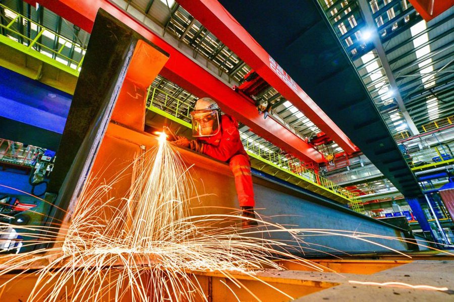 1月19日,在天津市濱海新區,海上油氣平台建設工人進行氣割作業。新華社發(杜鵬輝攝)統籌:汪奇文、梁敏