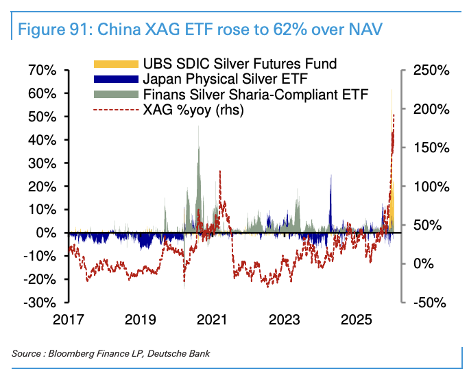 同時中國加強了對海外投資資本利得和股息的稅收徵管,這可能促使資金在國內轉向貴金屬投資;這與2025年末中國白銀ETF溢價創紀錄相呼應。