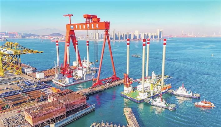 1月22日,由中船武漢船機海西重機自主設計建造的兩座新一代「海上移動島」——TYPE3 PRO型自升式海上作業支持平台,從青島西海岸新區啓航,發往中東波斯灣海域交付。新華社發