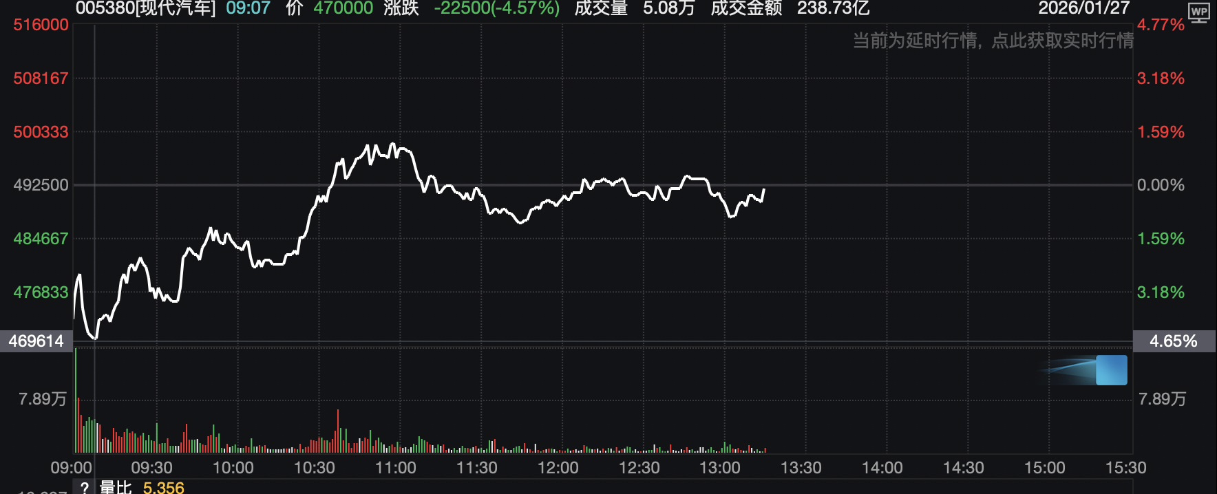 汽車股開盤大跌,後隨指數上升跌幅縮小