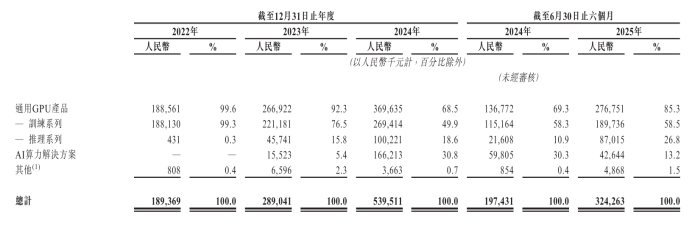 在收入構成層面,公司近年來的主營業務,正逐漸從單一訓練系列通用GPU產品拓展至「訓推一體通用GPU產品+AI算力解決方案」形成的矩陣。