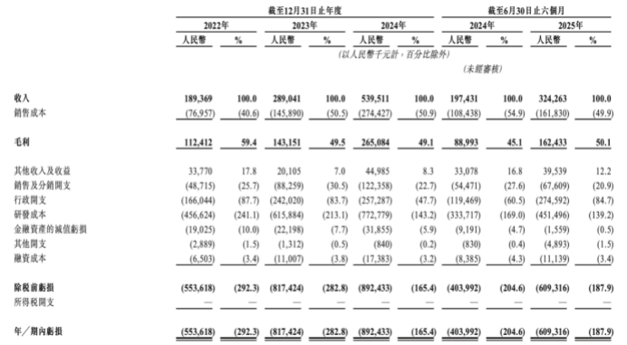 2022-2024年,公司淨虧損分別為5.54億元、8.17億元、8.92億元,2025年上半年淨虧損6.09億元,近三年半累計虧損達28.72億元。