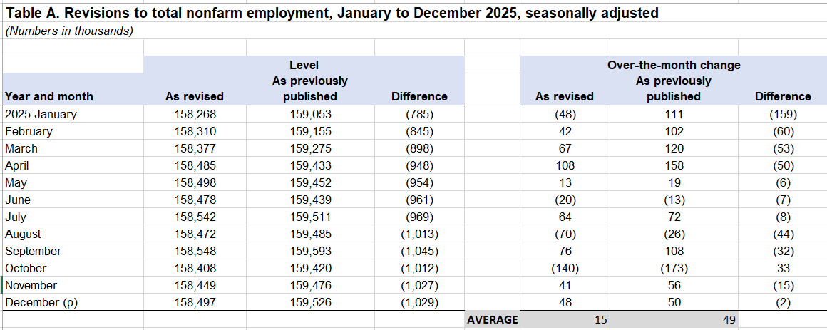 這一基準修正幅度顯著,表明去年勞動力市場的實際疲軟程度遠超此前認知。