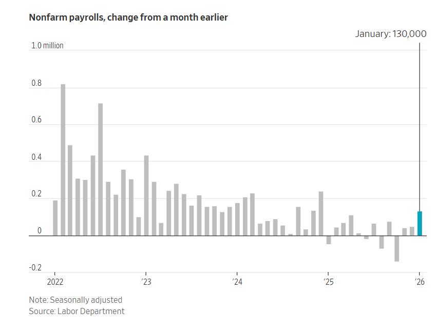 華爾街日報報道認為,1月非農就業報告可能會強化聯儲局的觀望態度,使聯儲官員難以找到勞動力市場疲軟的理由推動進一步降息。
