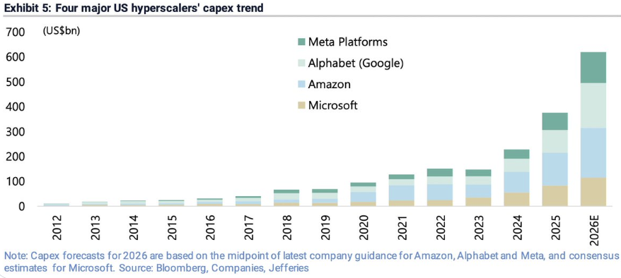 摩根士丹利則預計超大規模雲廠商今年借款規模將達到4000億美元,高於2025年的1650億美元。股權端的「萬億美元回撤」與信用端的「對沖熱」,正在共同重估「大廠風險」的定價。
