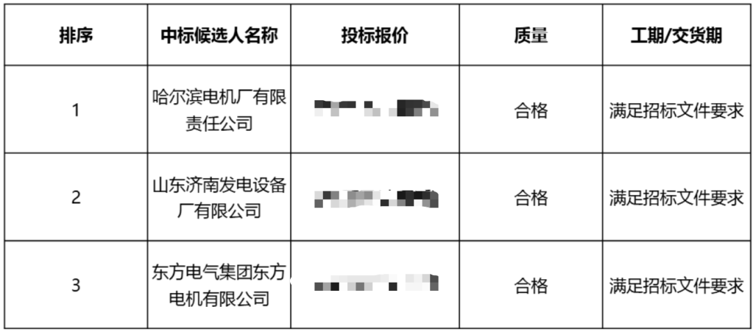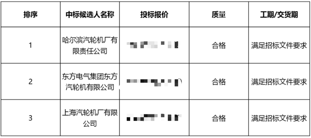 001汽輪機中標候選人第一名為哈爾濱汽輪機廠有限責任公司;