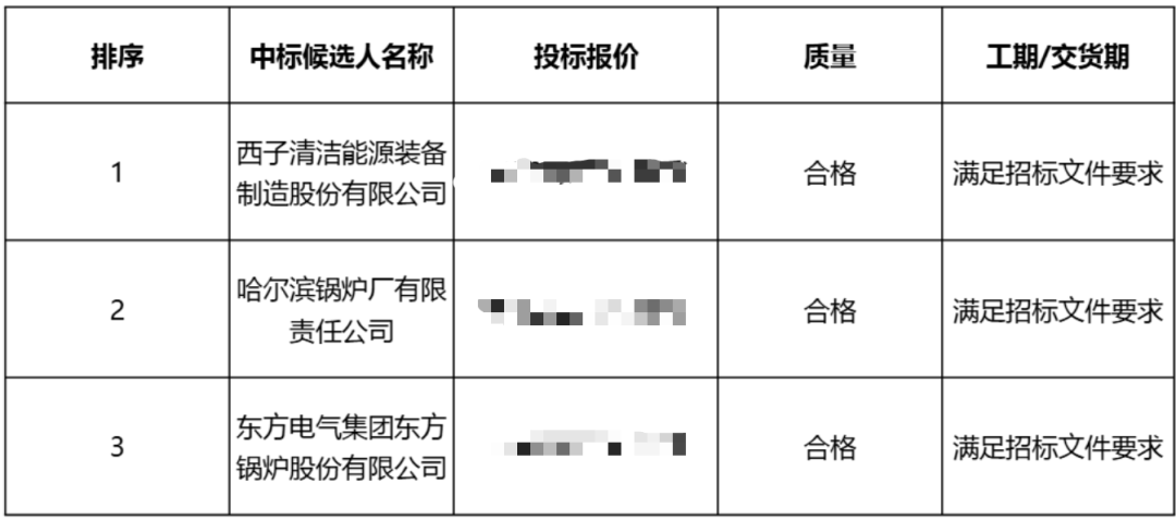 003蒸汽發生器中標候選人第一名為西子清潔能源裝備製造股份有限公司。