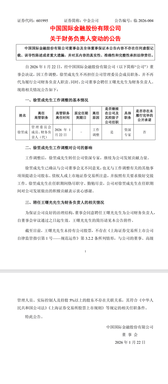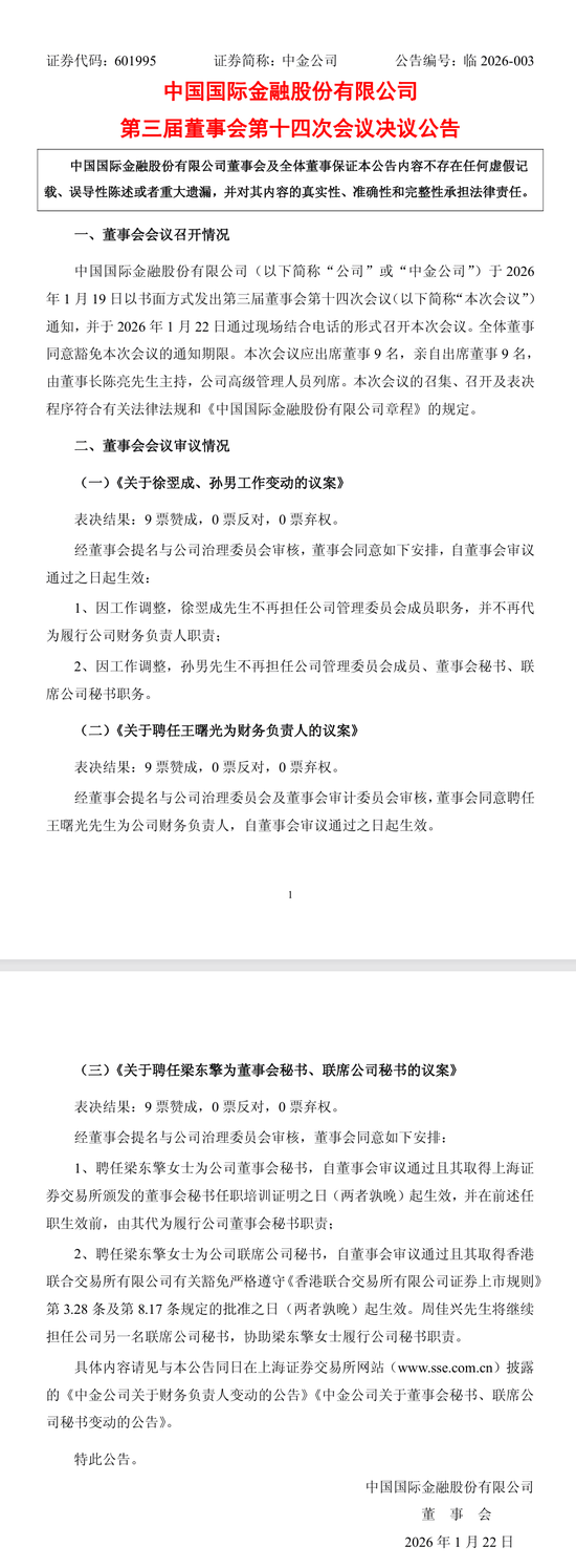 中金公司為了讓決策更快、業務轉型更順,讓大老闆親自管財務,同時把一位80後女將推向前台負責對外發聲。整個過程合規、平穩,但暗含着加速轉型的決心。