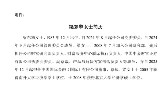 80後女將接手對外發聲:做財富管理出身的梁東擎接替孫男當董祕,這不僅是管理層年輕化,也暗示中金未來可能要重點講財富管理的故事。