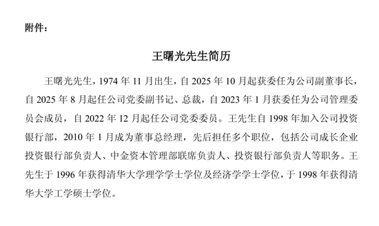 總裁親自管財務:王曙光以總裁身份兼任財務負責人,等於「一把手」直接抓錢袋子,以後花錢決策效率會更高。