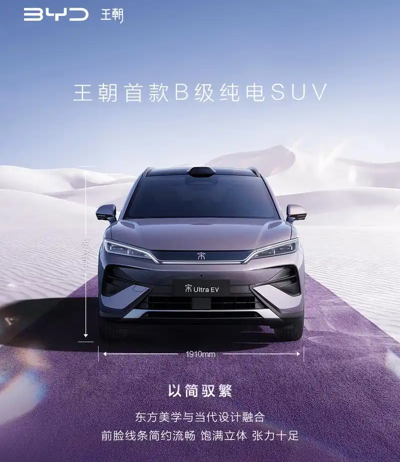 電動知家消息,比亞迪王朝網首款B級純電SUV——宋Ultra EV近日正式發布官圖,並已完成工信部申報,進入新能源汽車免徵購置稅目錄。根據官方信息,新車預計售價18萬元左右,CLTC工況最高純電續航達710km。