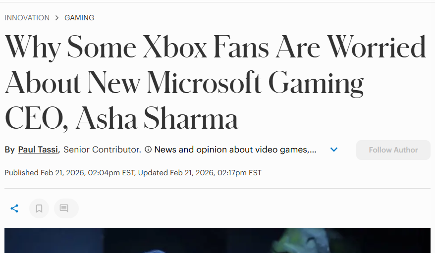 【環球網科技綜合報道】2月23日消息,據Forbes報道,近日微軟宣佈對其遊戲部門進行大規模人事調整。微軟遊戲首席執行官菲爾·斯賓塞將退休,微軟遊戲部門新任首席執行官是36歲的微軟高管阿莎·夏爾馬。但當玩家們得知她之前的職位後,擔憂之聲立刻湧上心頭。