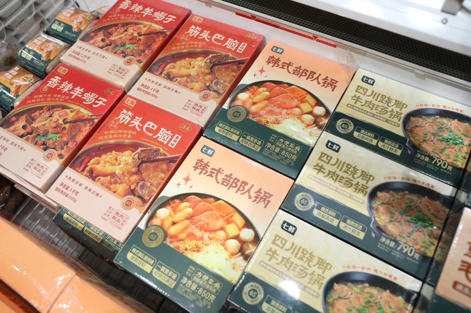 目前京東七鮮自有品牌SKU已超700,覆蓋休閒食品、乳品冷飲等七大核心類目,過去一年成交額按年激增400%,以「配料乾淨、健康適配、高性價比、年輕化」為核心,深度貼合消費者當下對實用於獵奇的多重需求。,馬年春節期間,七鮮自有品牌銷量也按年激增510%。除了暢銷的各類特色禮盒,羊蠍子、筋頭巴腦等新近推出的方便年菜,也成為年輕人輕鬆打造大廚級年夜飯的熱門選擇。