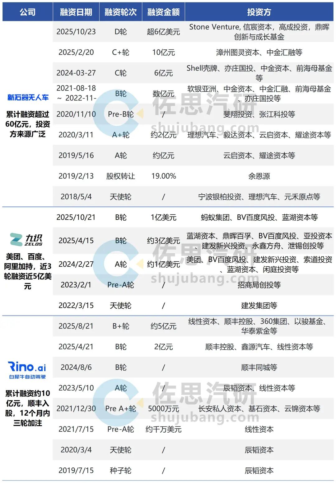 新石器、九識智能、白犀牛孖展統計