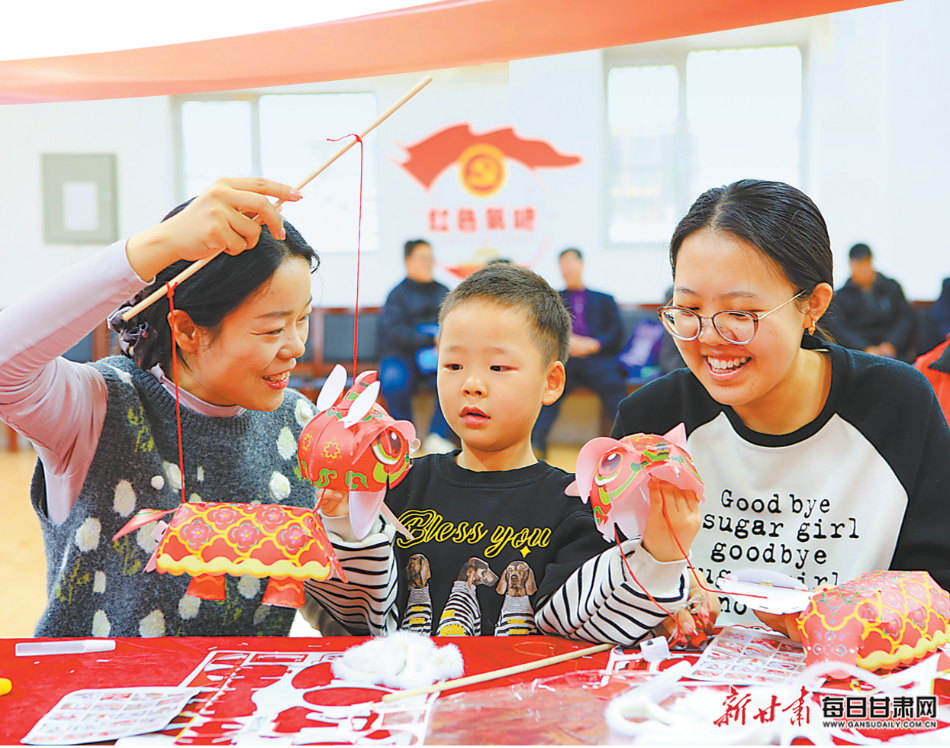 嘉峪關五一社區服務中心組織居民製作花燈。新甘肅·甘肅日報通訊員 馬玉福