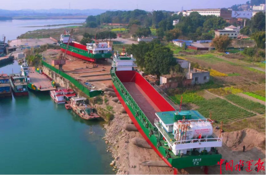 2月22日,在四川省樂山市五通橋區橋溝碼頭,由四川樂山犍為川犍造船廠承建的第一批LNG新能源集散兩用船舶「又陽8號」「又陽9號」順利下水。