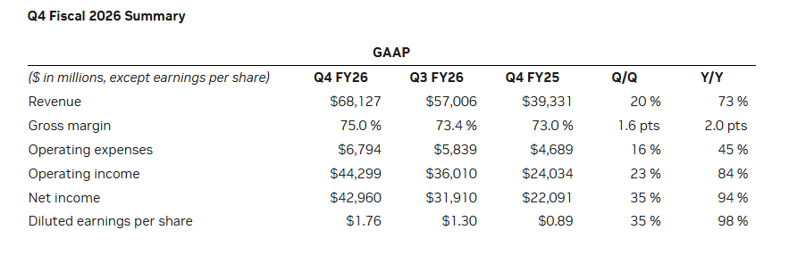 2月26日,英偉達公布2026財年第四財季(對應自然年2025年第四季度)及全年業績,受益於AI算力需求的擴張,英偉達各項財務指標均超出市場預期。