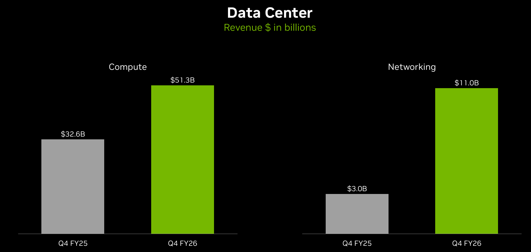 網絡業務第四財季收入110億美元,按年增長263%,按月增長34%。增長動力來自面向GB200和GB300系統的NVLink計算架構持續應用,以及以太網和InfiniBand平台的發展。這部分業務主要用於連接AI服務器集羣,反映出客戶對大規模算力部署的需求。