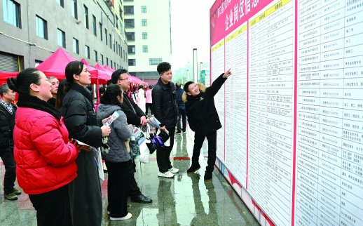 2月26日,洞口縣山門鎮里仁村招聘服務處,求職者在了解企業招聘信息。近期,該縣組織80餘家用人單位深入鄉村社區,開展「送崗上門」招聘活動,提供2600多個就業崗位,有效促進羣衆就近就業。 滕治中 謝丹 攝影報道