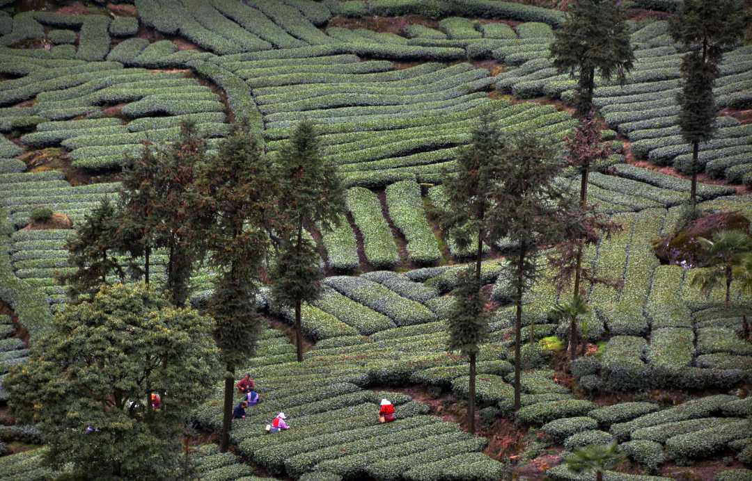 3月1日,四川省丹棱縣張場鎮峨山村村民在採摘「明前茶」。