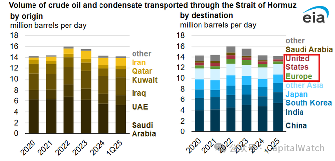 霍爾木茲海峽是科威特、卡塔爾、巴林等產油國以及沙特阿拉伯大部分石油產量的唯一出海口。
