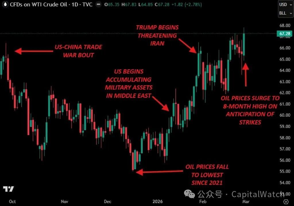 那麼,周日晚間期貨開盤時,石油價格將會如何走勢?如下所示,石油市場已經充分反映了較大的地緣政治風險溢價。