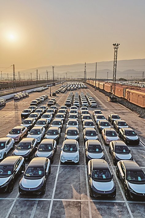 2025年11月29日,重慶果園港內,新能源汽車等待出海。新華社發