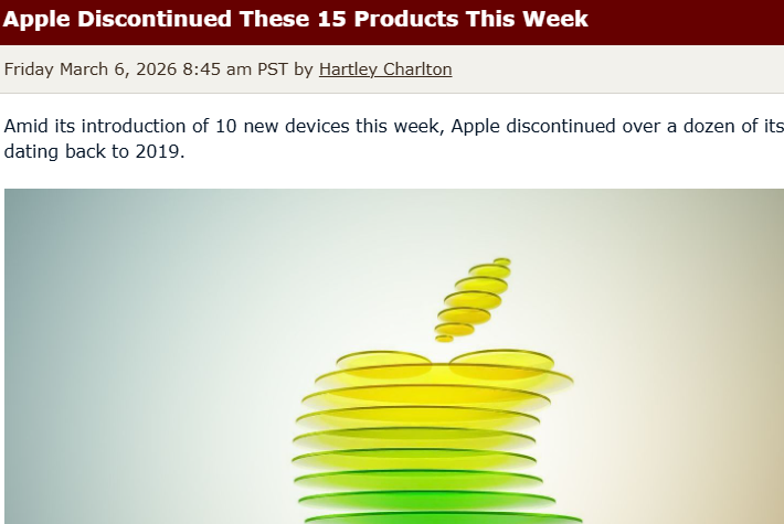 【環球網科技綜合報道】3月7日,據外媒macrumors報道,蘋果本周迎來產品迭代高峯,在推出10款全新設備的同時,宣佈停產15款舊產品,覆蓋iPhone、iPad、Mac及顯示器等多個品類,最早可追溯至2019年上市的機型。