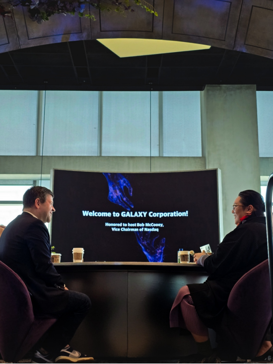 3月4日,美國納斯達克副主席、全球資本市場相關負責人鮑勃·麥庫伊(Bob McCooey)到訪位於首爾汝矣島的Galaxy Corporation總部,實地了解公司增長戰略,並就其在美國資本市場上市的可行性等進行交流。業內人士認為,在韓國娛樂科技領域,國際資本市場機構高層為評估企業競爭力而開展現場走訪的情況並不多見。