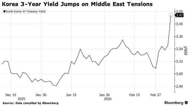 周末中東緊張局勢的升級推高了油價和美債收益率,導致韓國三年期國債收益率在周一升至 3.47% 左右。韓國央行表示,如有必要,將採取適當的市場穩定措施。