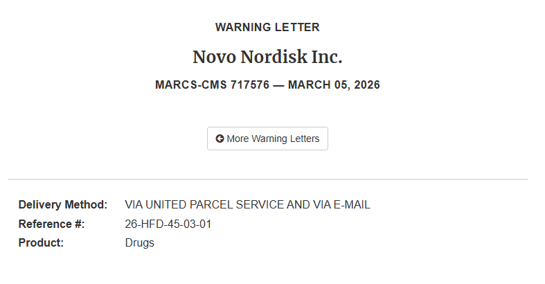 2026年3月,醫藥資本市場再度被一隻「黑天鵝」驚擾。就在幾天前,全球「減肥藥之王」諾和諾德的股價在單日內應聲下跌超 3%,數十億美元市值瞬間蒸發。引發這場震盪的,不是臨床試驗的失敗,也不是供應鏈的斷裂,而是一紙來自美國FDA科學調查辦公室、長達8頁的嚴厲警告信。