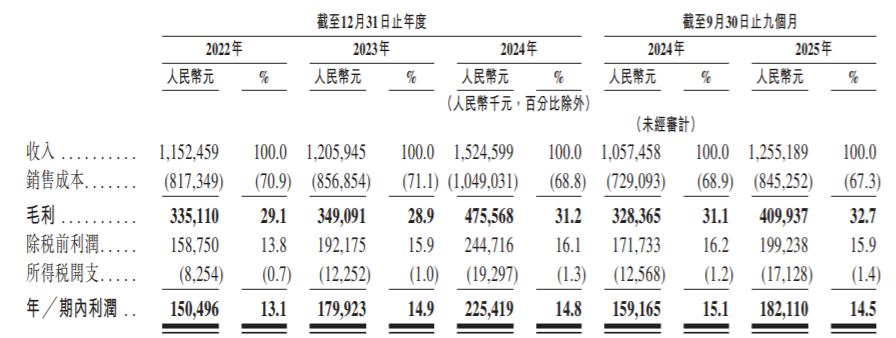 業績方面,2022年、2023年及2024年,兆威機電的收入分別為11.52億元、12.06億元及15.25億元;淨利潤分別為1.50億元、1.80億元、2.25億元。