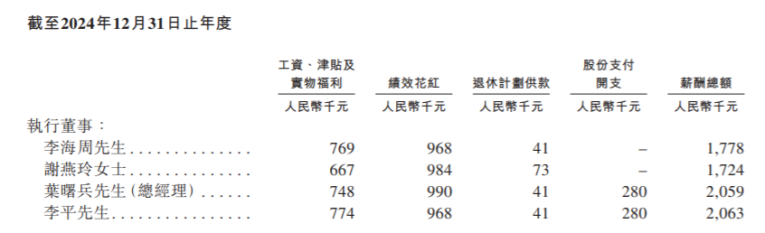 2024年,李海周、謝燕玲夫婦薪酬分別為177.8萬元、172.4萬元,合計350.2萬元。