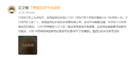關鍵詞:淘寶百億補貼無故砍單,消費者維權被平台拉黑賬號