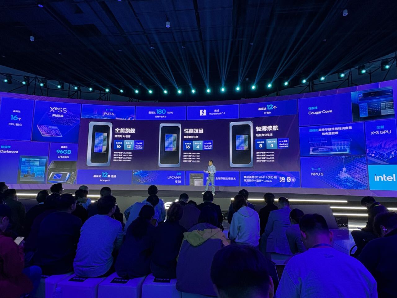 根據英特爾官方提供的數據,基於其Xe3 GPU和NPU 5的基礎算力和融合算力架構,第三代酷睿Ultra可以提供最高180TOPS的算力。