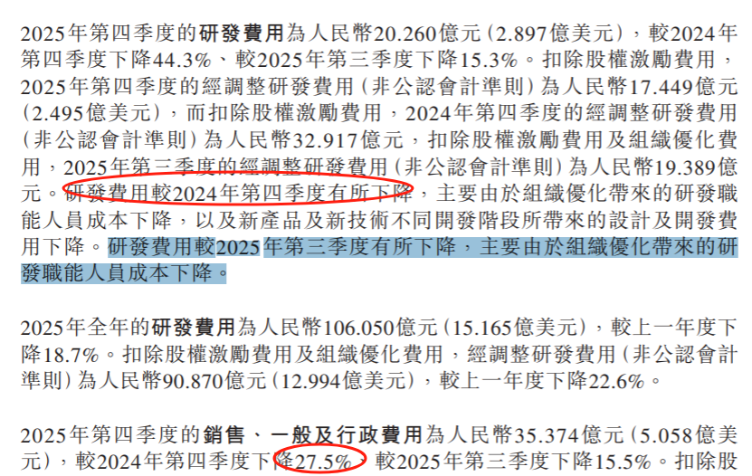 財報顯示,四季度蔚來研發費用20.26億元,按年下降44.3%,主要是組織優化帶來的(這個懂的都懂吧?);銷售、一般及行政費用35.37億元,按年下降27.5%,兩項核心費用合計較去年同期省了二十多億。因此,市場上也出現了不同聲音,認為蔚來存在調節費用的嫌疑,核心目的指向「四季度實現盈利」的承諾。