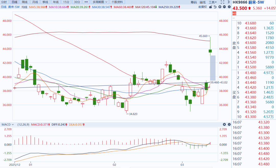 在一季度整體低迷的車市中,這樣的業績表現得到資本市場積極反饋——3月11日,蔚來股價大漲,漲幅一度高達19%;截止收盤,蔚來港股大漲14%,市值攀升至1076億港元。