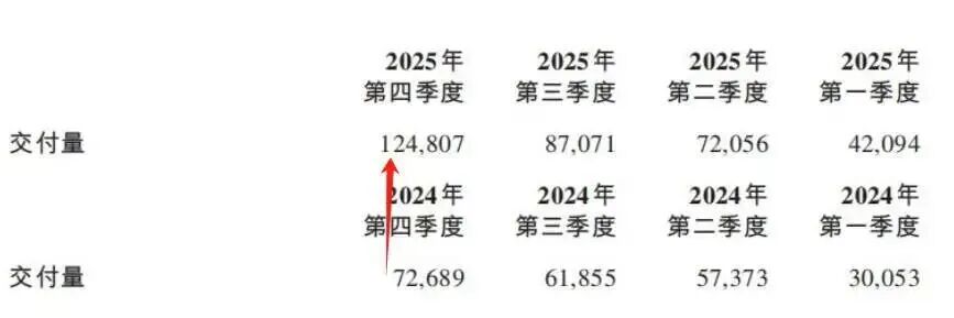 具體來看,2025年第四季度,蔚來汽車交付量達124807輛,按年增長71.7%,按月增長43.3%。其中,蔚來品牌交付67433輛、樂道品牌38290輛、螢火蟲品牌19084輛,三大品牌協同發力,撐起了銷量高潮。