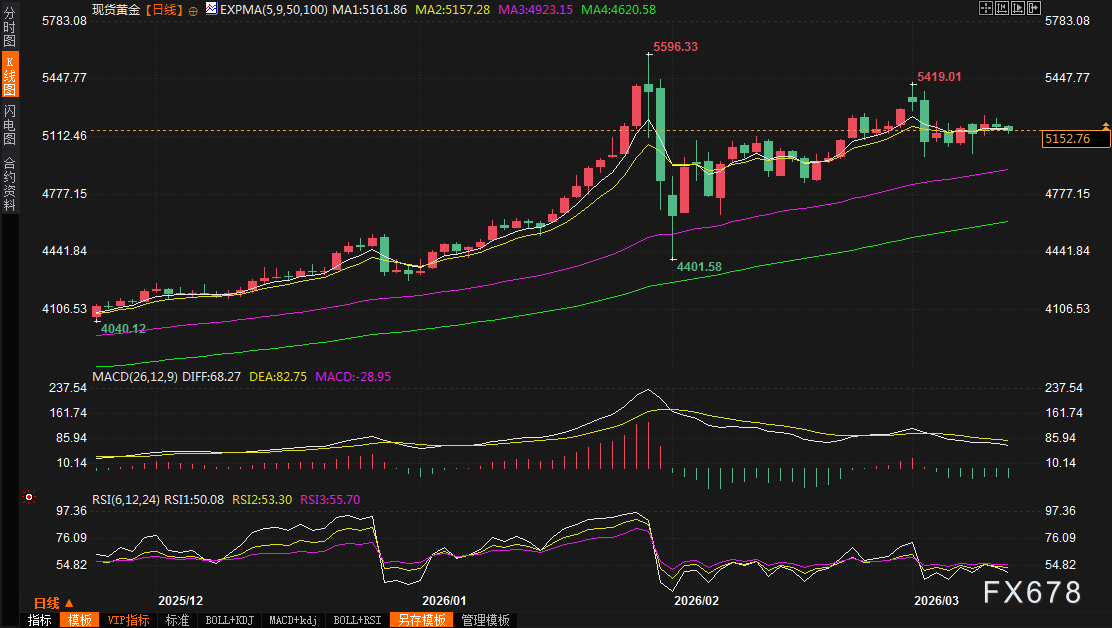 黃金市場正上演一場驚心動魄的「拉鋸戰」:一邊是中東戰火熊熊燃燒帶來的避險狂潮,另一邊是美元狂飆與通脹幽靈死灰復燃的雙重壓制。周三(3月11日),現貨黃金收於每盎司5176美元,單日小幅回落0.3%,美國4月黃金期貨更是重挫1.2%至5179.10美元。周四(3月12日)亞市早盤,現貨黃金震盪微,目前交投於51510美元/盎司附近。短短几天內,金價振幅急劇收窄,彷彿市場在戰爭與利率的雙重夾擊下屏住了呼吸。然而,這場看似平靜的回調背後,卻隱藏着足以重塑全球資產格局的超級不確定性。