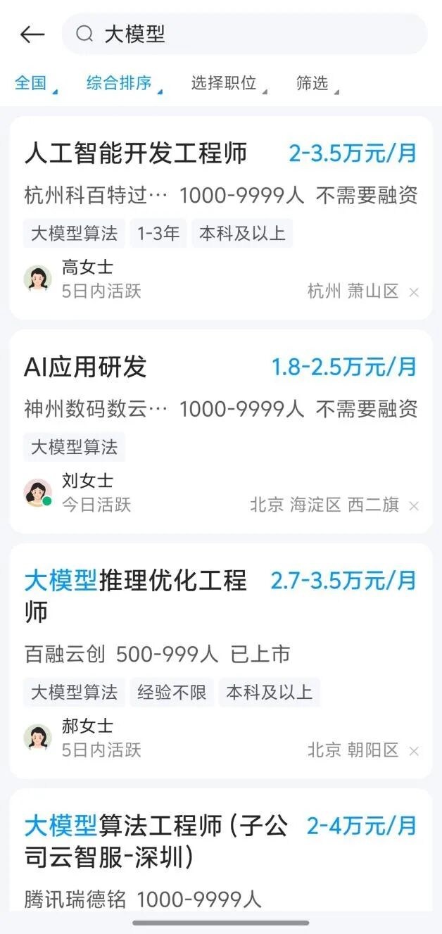 大模型算法成熱門崗位