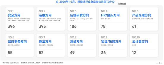 在AI人才爭奪戰愈演愈烈的同時,企業對於安全、運維及底層技術人才的需求也日益迫切。報告指出,2026年1-2月,企業急招崗位方向前三分別為安全方向、運維方向和後端研發方向。